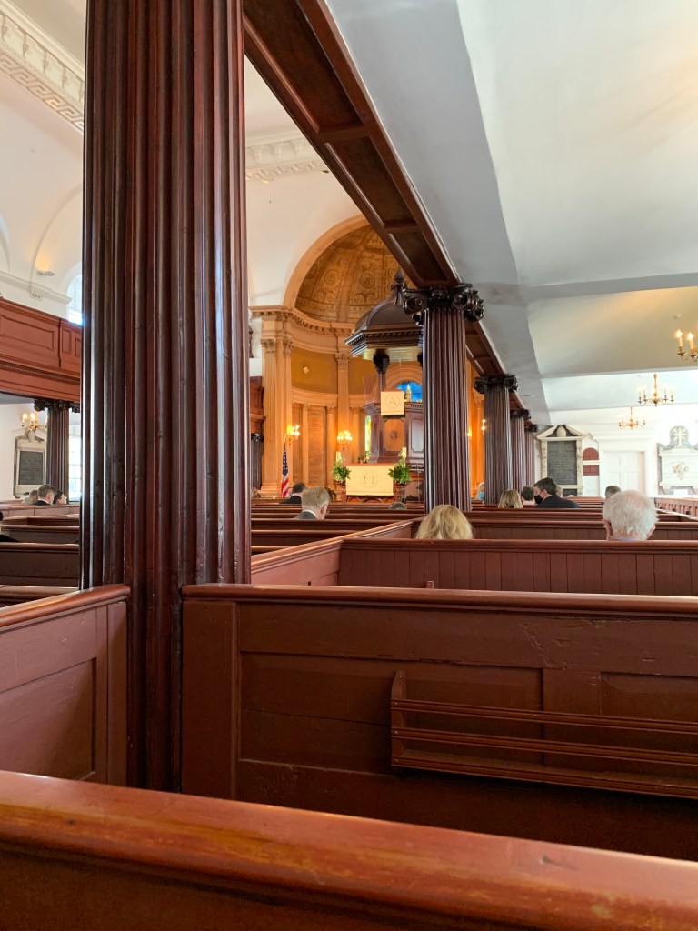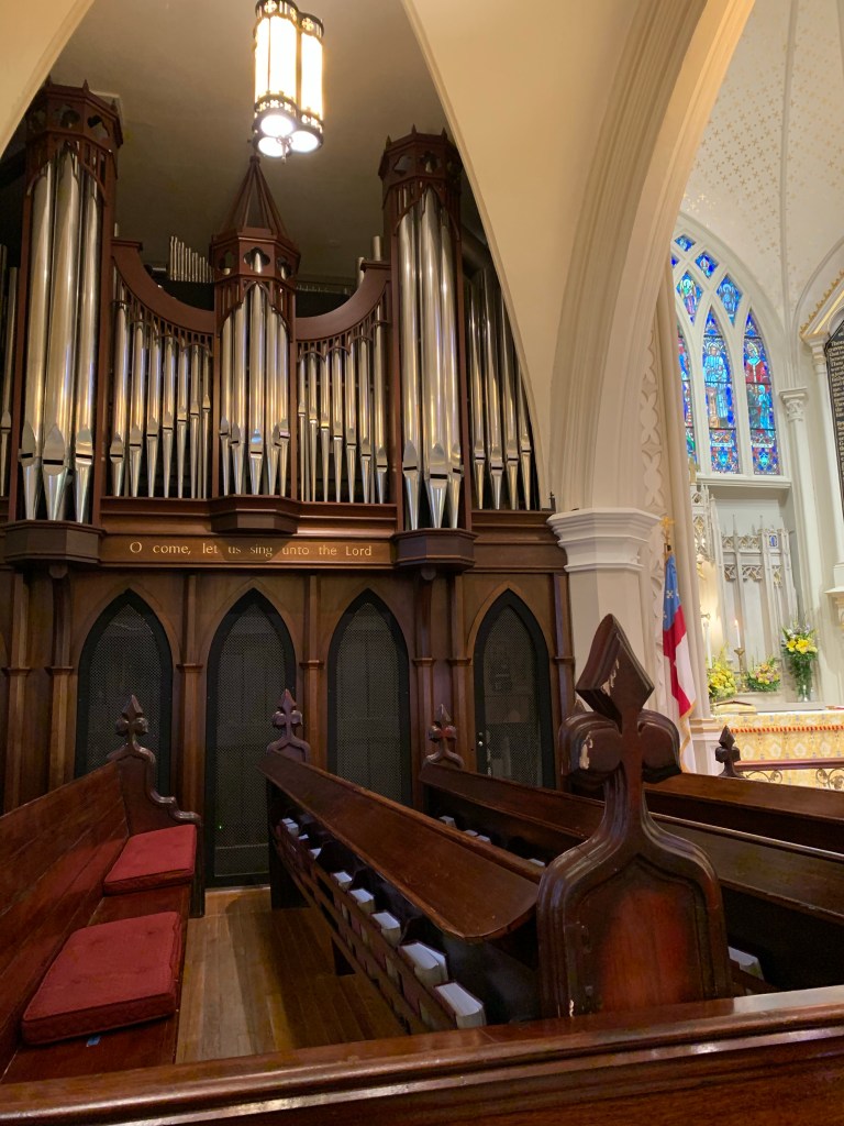 I arrived with what I thought were just a few minutes to spare for the 9 a.m. service; however, it started at 9:15 a.m., which gave me time to truly enjoy the sanctuary and the beautiful prelude singing as well as the organ. The organ was quite loud, and no complaints as it produced a stunning sound! When I think back to my childhood and moments when I did enjoy going to church, it was always about the music for me – the harmonies of choir members, the old school hymns and hearing an organ played in all its majesty. Something that is under appreciated in Charleston is strolling downtown with a coffee and hearing all the church bells toll. They can change your whole vibe and take you to a certain peaceful place mentally.